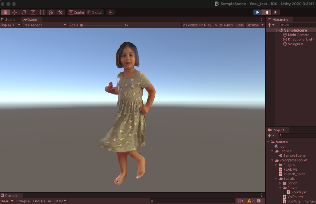 The Unity Editor is playing the vologram of my daughter Lili while dancing.